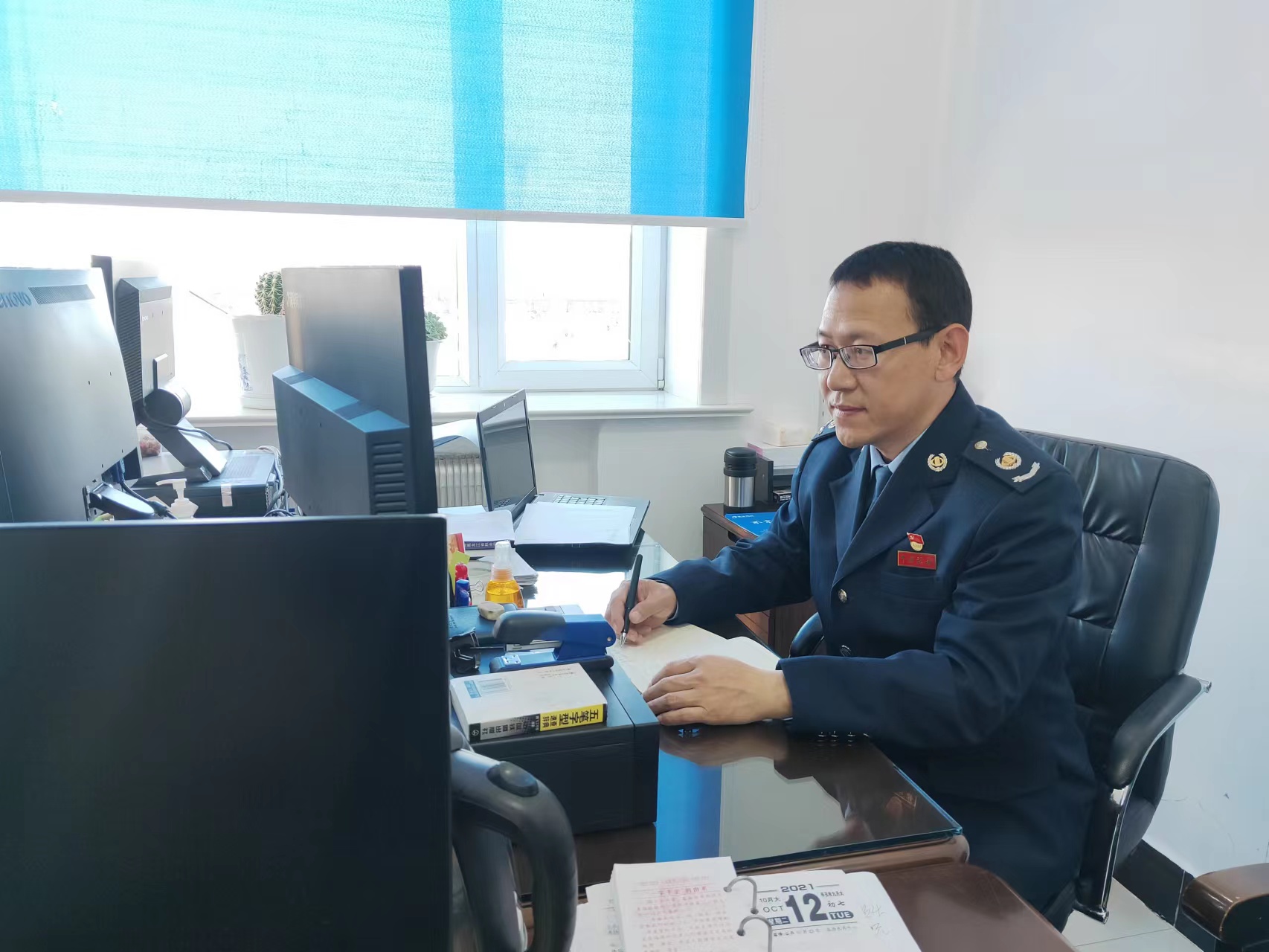 参加工作后,长时间高负荷的工作破坏了自身免疫系统,被确诊为1型糖尿病,胰腺完全丧失功能,几度面临生命危险,但出院后第一时间就返回工作岗位。特别是在减税降费攻坚时期,他一再拖延入院复查治疗,两度晕倒在岗位。在他和同事们的努力下,累计落实减税降费5.72亿元。他无畏病痛,仍担当不辍,长期的病痛折磨让他身体十分虚弱,但始终乐观坚强,不懈进取。2020年,为完全国务院大督查及疑点数据核实工作,他负病连续工作13天加班加点核实清理数据,使疑点数据处理率达到100%,他所在的局也取得了当年纳税人满意度全省第一的好成绩。他面对生死,仍坚定执着,随着病情的不断加重,他又被确诊糖尿病并发心脏病,心脏支架手术后,又是第一时间返回岗位,并全程参加了今年以来“新的组合式税费支持政策”落实工作,与同事们一道及时高效完成了110余户次退税减税任务。他面对挑战,勇敢无畏,成为了纪检干部后,面对高强度的工作,负病前行,毫无怨言。2021年8月期间,他与暗访组工作人员起早贪黑,克服身体不适和旅途劳累,连续半个月往返在全市10个县区局的30多个工作地点,行程近千公里,圆满完成了市局纪检组交办的工作,得到了上级领导和同事的高度认可和称赞。