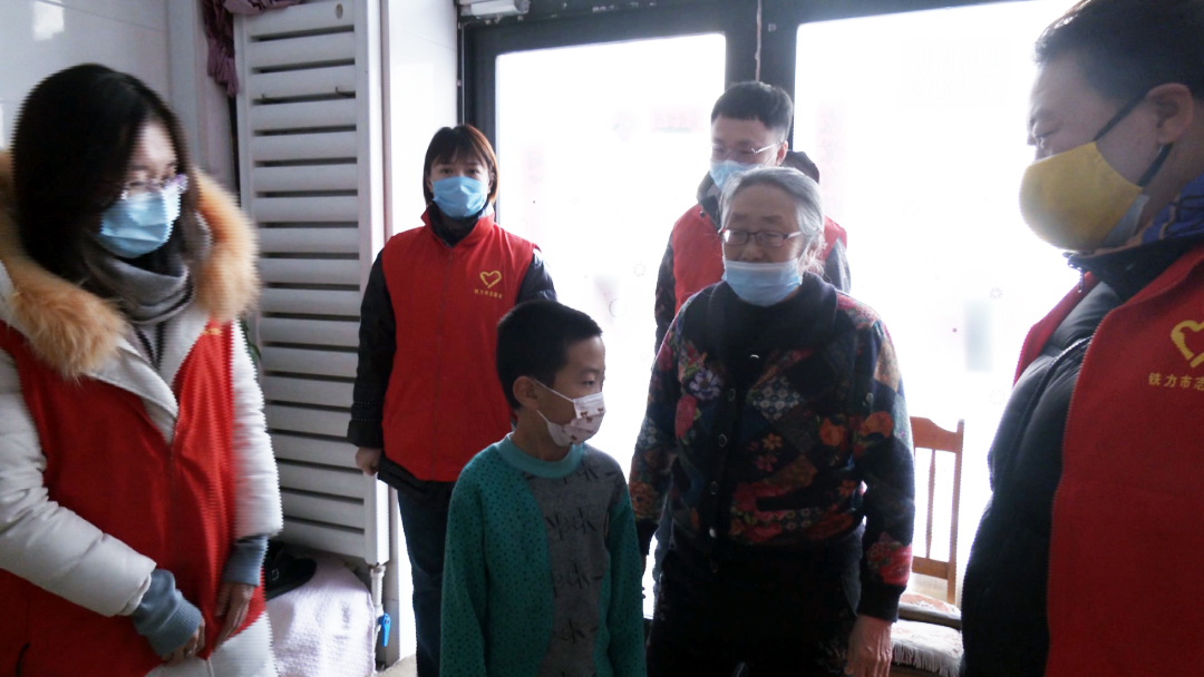 73岁的于长芹是东岗社区的低保户,视力残疾四季,又身体多病,9岁的孙子冯博俊是特困人员。祖孙两人相依为命,一直以来都是铁力镇和社区在帮助和照顾两位困难人员。志愿者来到于长芹家中,为他们送去了大米、白面和汤圆,和他们过了一个团圆节。